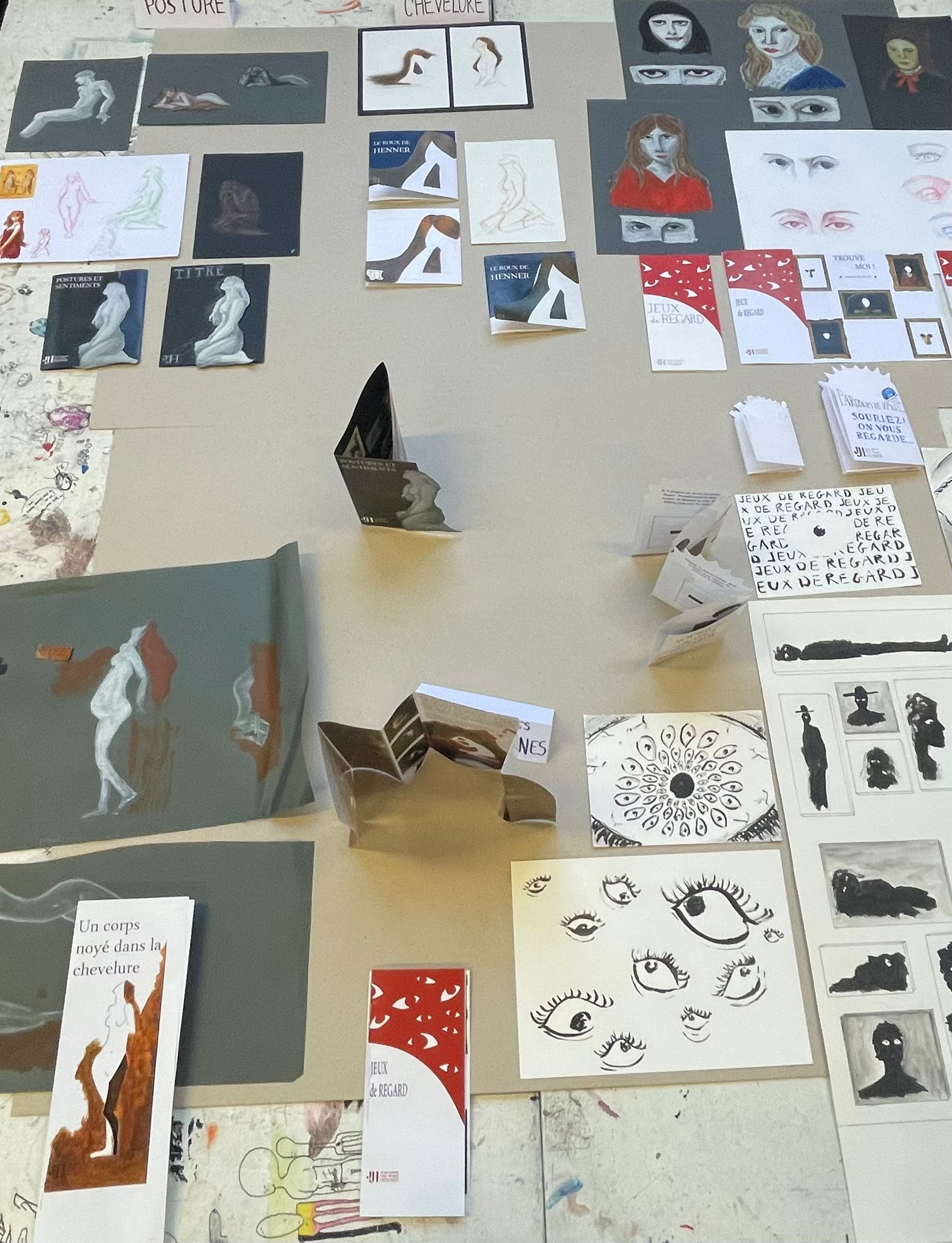 En collaboration avec le musée national Jean-Jacques Henner, les enseignants d’arts appliqués ont soumis à une classe de terminale ST2A et une classe de 2e année de DNMADE un sujet de communication graphique autour de la médiation en prenant comme objet d’étude le musée Henner.
