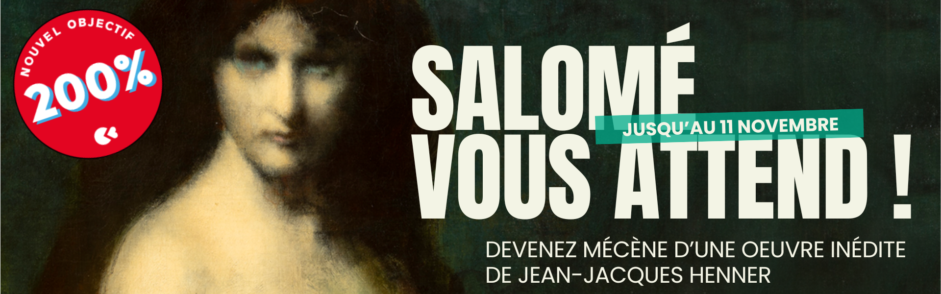Le musée Henner a l'opportunité d'acquérir "Salomé", un tableau majeur de Jean-Jacques Henner, maître du XIXe siècle. Nous vous invitons à participer à cette acquisition unique pour enrichir les collections nationales et offrir au public une œuvre inédite de grande qualité.
